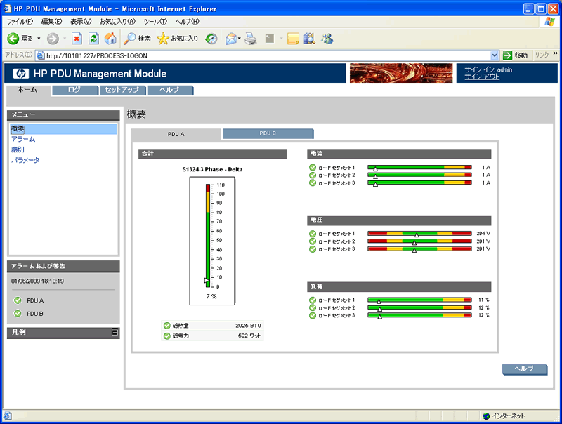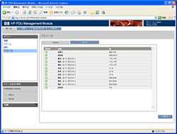Smart PDUにPDUマネジメントモジュールを装着すれば、個々のロードセグメントごとに電源の使用量や負荷などを、WebブラウザやTelnetを使って一目で確認をできるようになるほか、ログ取得機能もあるために、どういった状況で電源が変化しているのかについても、きちんと確認したり、比較分析を行ったりすることが可能だ。またUPSと同様、日本HPのシステム管理ソフトであるSIMとの連携が可能な点も、日本HPならではの大きな特徴といえるだろう。